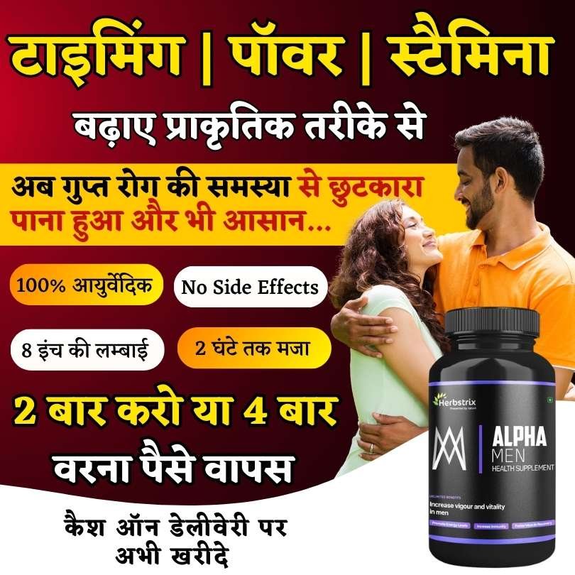 हमारे भारत में अश्वगंधा, शिलाजीत, सफ़ेद मूसली, गोखुरा, केसर, शतावरी, मकरध्वज, जैसी शक्तिशाली जड़ीबूटियां मौजूद है जो किसी भी तरह के गुप्त रोगों को जड़ से उखाड़ फेकती है। इसीलिए 13 जड़ीबूटियों और भस्मों को उचित मात्रा में मिश्रण करके बनाया गया है आयुर्वेदिक “Alpha Men“ जी हाँ Ayurveda द्वारा बनाई गयी ये दवा सिर्फ शीघ्रपतन ही नहीं बल्कि सभी प्रकार के गुप्त रोगों में बहुत असरदार है और पूर्ण रूप से सुरक्षित भी है। वही, केमिकल वाली गोलियां गुप्त रोगों पर कोई असर नहीं करती बल्कि कार्डियक अरेस्ट, लिवर डैमेज, हार्ट स्ट्रोक, और प्रोस्टेट रिलेटेड समस्या उत्पन्न कर सकती है।