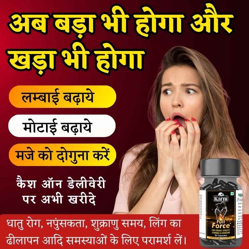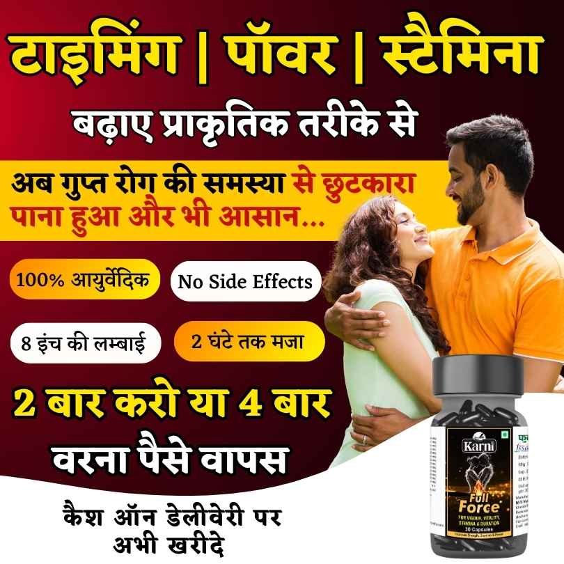 हमारे भारत में अश्वगंधा, शिलाजीत, सफ़ेद मूसली, गोखुरा, केसर, शतावरी, मकरध्वज, जैसी शक्तिशाली जड़ीबूटियां मौजूद है जो किसी भी तरह के गुप्त रोगों को जड़ से उखाड़ फेकती है। इसीलिए 13 जड़ीबूटियों और भस्मों को उचित मात्रा में मिश्रण करके बनाया गया है आयुर्वेदिक “Full Force Capsules“ जी हाँ Ayurveda द्वारा बनाई गयी ये दवा सिर्फ शीघ्रपतन ही नहीं बल्कि सभी प्रकार के गुप्त रोगों में बहुत असरदार है और पूर्ण रूप से सुरक्षित भी है। वही, केमिकल वाली गोलियां गुप्त रोगों पर कोई असर नहीं करती बल्कि कार्डियक अरेस्ट, लिवर डैमेज, हार्ट स्ट्रोक, और प्रोस्टेट रिलेटेड समस्या उत्पन्न कर सकती है।