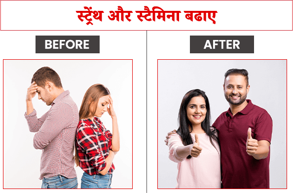 स्ट्रेंथ और स्टैमिना बढ़ाकर कमजोर पुरुष को भी जोशीला बनाता है जिससे वो बिना थके लम्बे समय तक जोरदार प्रदर्शन कर पाता है।